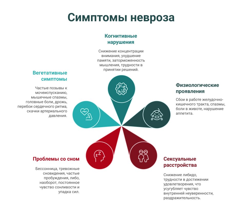 «Симптомы невроза — от тревоги до болей в теле — являются сигналом эмоционального перенапряжения. В клинике в городе Клинцы мы помогаем пациентам найти истинную причину внутреннего конфликта и устранить ее без пожизненного приема таблеток.
